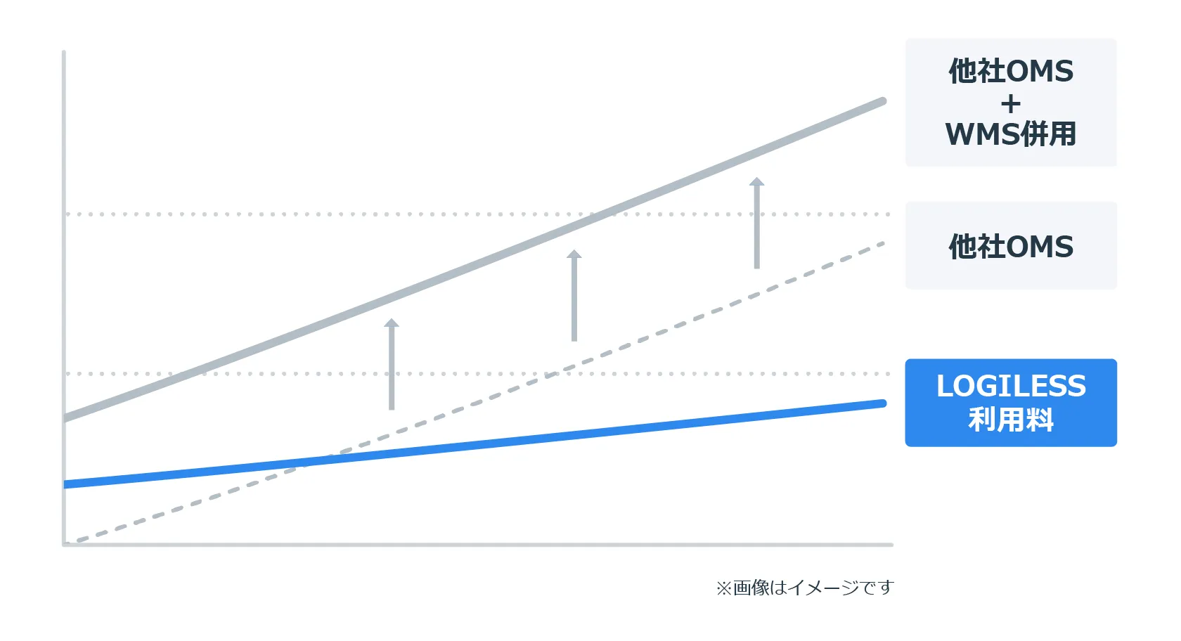 LOGILESSは出荷1件あたりに発生する従量課金額を他社よりも安く提供しているため、出荷件数が多くなればなるほど、利用料が他社よりも安くなります。 現在の出荷件数はそこまで多くなくても、「業務の効率化をして、もっと出荷件数を伸ばしていきたい」とお考えのEC事業者さまは、LOGILESSの導入がおすすめです。